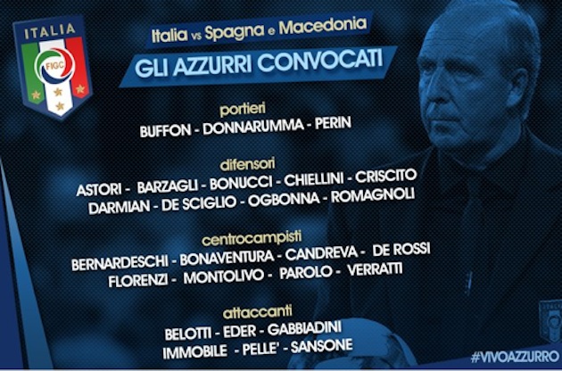 Giovedì 6 Ottobre 2016, alle 20.30, in diretta su Rai 1, si gioca Italia-Spagna, secondo match del Girone G valido per le qualificazioni dei Mondiali di Russia 2018.