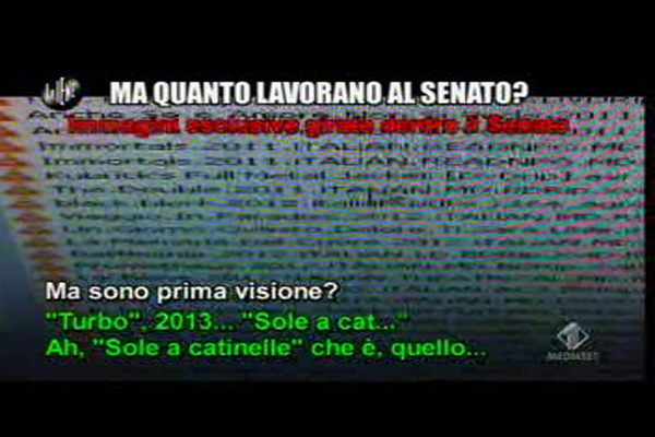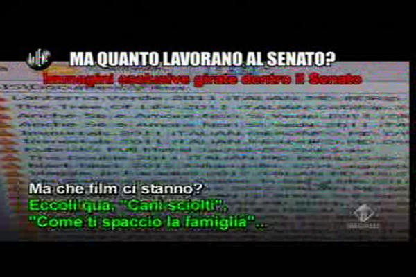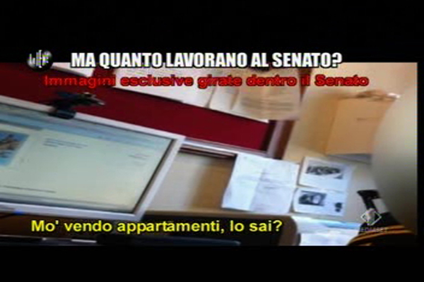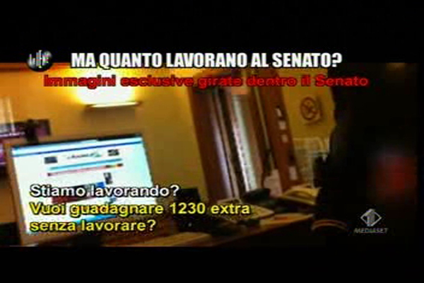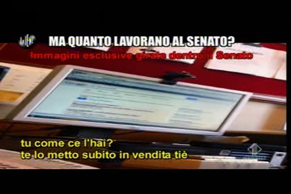 Nell’ultima puntata de Le Iene, il programma di denuncia di Italia 1, Filippo Roma ha confezionato un interessante servizio per fare vedere come i dipendenti del Senato, persone che guadagnano circa 150mila euro all’anno, non lavorino in realtà quasi mai. In orario di ufficio fanno di tutto: giocano a poker, guardano film, vendono cose su eBay e organizzano vacanze, ma di lavorare proprio non se ne parla.