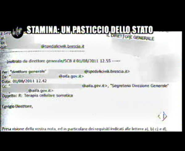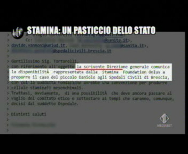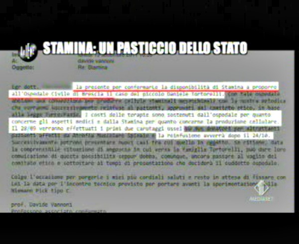 Nello show di Italia 1 ci sono però tutte le carte che dimostrano di come il Ministero fosse tenuto al corrente, anche direttamente da Vannoni, di quanto accadeva a Brescia.