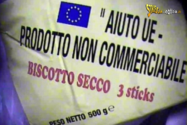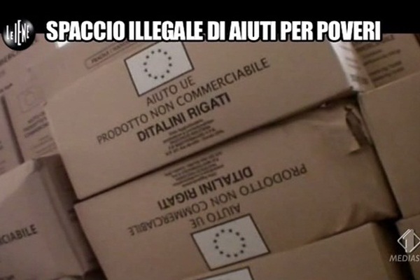 Dopo qualche ora, è bastato cambiare canale dall’ammiraglia Mediaset alla rete più giovanile Italia 1 con la diretta de Le Iene, dove Giulio Golia ha riportato nel servizio che stavolta sono i prodotti dell’Unione Europea mandati alle associazioni caritatevoli per la distribuzione gratuita: si tratta di alimenti come pomodori, pasta, latte, olio, piselli e altri beni di prima necessità su cui è apposta l’etichetta AIUTO UE – PRODOTTO NON COMMERCIABILE.