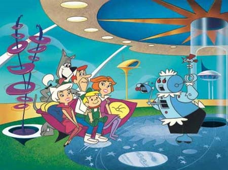 I Flintstone stanno all’età della pietra come i Jetson all’età della super tecnologia. La struttura del cartone è simile a quella della sit com, ed è una parodia del presente che ha come protagonisti una famiglia del futuro, I Pronipoti.