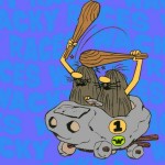 La macchina numero uno è dei Fratelli Slagg, loro sono sulla macigno mobile, un mix tra cugino It e gli antenati sulla macchina di pietra che diventa turbo quando cominciano a spingerla con i piedi.