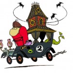L’altra macchina in gara è Il diabolico Coupè, la macchina numero due, un mix tra castello di dracula, streghe con drago sputa fuoco.