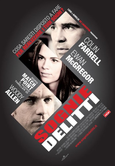 Woody Allen gira un altro film in terra inglese, dirigendo un cast di bravissimi attori (oltre a Farrell e Mc Gregor, ottima l’interpretazione da mafioso di Zio Howard Tom Wilkinson), e si concentra sulla descrizione dei due modi differenti di vivere il senso di colpa di un omicidio: il primo, Ian, freddo e calcolatore (il suo obiettivo è quello di conquistare il cuore di un’attrice di teatro molto sensuale), titubante solo all’inizio e in seguito pronto pure ad ammazzare il proprio fratello (lo farà?), il secondo, Terry, impreparato al compito che deve portare a termine, in seguito incapace di superare il trauma dell’assassinio commesso.