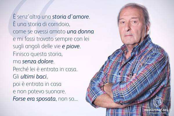 1 | Alberto: il grande “vecchio” della terza edizione di MasterChef Italia è uscito troppo presto dal talent. Andato al pressure test è stato eliminato con Michele C, a farlo fuori un piatto di ricci di mare, o se preferite il fatto che abbia gettato la spugna: l’aspirante chef-poeta non ha neanche impiattato. Lo chef Barbieri lo ha salutato con grandissimo affetto e ad attenderlo ci sono le sue paperine. Alberto ha salutato così il pubblico di MasterChef Italia 3: