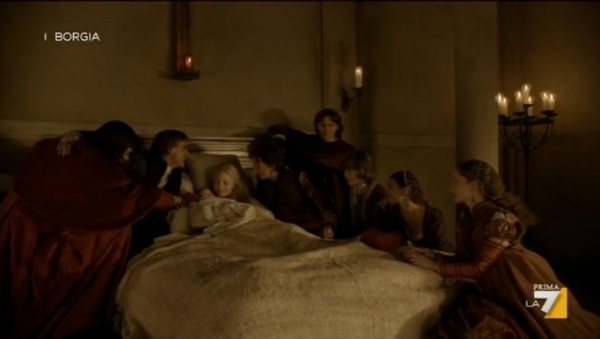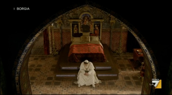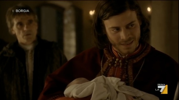 E Ieri sera abbiamo assistito agli ultimi intrighi (ormai di dominio internazionale) dell’ ambigua famiglia dei Borgia. Grazie all’insistenza del Cardinale Della Rovere, il Re Carlo di Francia ha invaso l’Italia, arrivando ad assediare la città di Lucca con una tale violenza che il Cardinale stesso ne rimane impressionato. Macchiavelli riesce a salvare  la sua città e  negoziare la pace, permettendo così alle truppe francesi di raggiungere Roma. Nel Frattempo Lucrezia con la complicità di Giulia Farnese fugge da Pesaro, ma incontra sulla sua strada le truppe Francesi che la trattengono.  Circostanza sfortunata ma del tutto provvidenziale, che permetterà a Lucrezia di convincere Re Carlo, usando la sua evidente bellezza, nel ricevere il permesso  di convincere il fratello Juan a ritirare le truppe, permettendo così l’ingresso di Carlo a Città del Vaticano, dove Alessandro VI lo aspetta vestito come un semplice frate, tentando di vincere attraverso un piano abile come quello di riconoscere la sovranità  francese sul Regno di Napoli. Così Roma è salva. E mentre il Cardinale della Rovere si dispera per lo smacco subito, Cesare, cerca di comprare i suoi favori.  la  La serie si conclude con  Lucrezia  che entra in Convento e qui  partorisce, non prima di aver annullato le sue nozze accusando suo marito d’impotenza, sentenza che ottiene con successo.  A poche settimane dall’ elezione del nuovo Papa, si conclude così  la bella serie dei Borgia. A tal proposito parlando dell’ordine dei gesuiti di cui Bergoglio fa parte, troviamo nella storia un famoso seguace della categoria,  Francesco Borgia, figlio di  Giovanni Borgia, nella serie tv ancora bambino. Vedremo nella prossima stagione quale dei due celebri motti dell’ordine dei gesuiti,  Perinde ac cadaver, “obbedire come corpo morto obbedisce”  più conosciuto del motto ufficiale Ad maiorem Dei gloriam, “a maggior gloria di Dio” verrà interpetato dalla famiglia più iniqua e ricca del rinascimento. Sotto una galleria d’immagini delle ultime puntate.