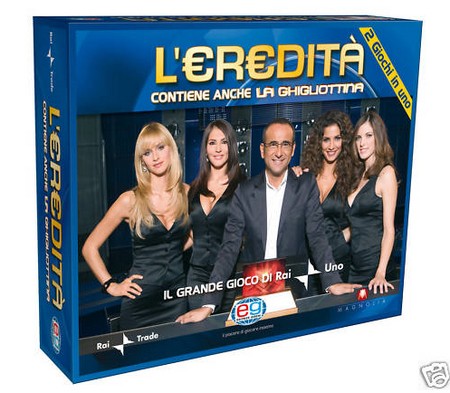 Di fronte ad un simile successo, anno dopo anno, il programma ha cercato di sfruttare la scia favorevole, creando un forte mercato di prodotti legati al marchio L’Eredità. Gettonatissimi i giochi di società del quiz, ma vanno forte tra i giovanissimi anche le versioni elettroniche per tutte le consolle dei videogiochi. E la mania sembra essere inarrestabile.