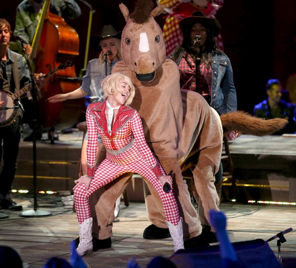 Passiamo a Miley Cyrus ed alla sua attesissima esibizione sul palco di MTV Unplugged, dove immersa in un’atmosfera country duetterà con Madonna cantando il brano Tell me e dove avremo la possibilità di vederla twerkare con un cavallo (finto fortunatamente).