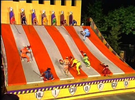 In cosa consisteva Giochi senza frontiere? Semplice: ogni squadra doveva superare una serie di prove per avere più punti possibili, inoltre se la squadra aveva un gioco in cui andava forte poteva richiedere il jolly, che raddoppiava il punteggio. A turno, le squadre dovevano saltare una prova per il fil rouge. Ogni gioco aveva qualche particolari: c’erano i giochi in acqua, quelli in cui bisognava affrontare un percorso ricco di insidie, quelli in cui bisognava usare la forza e quelli in cui bisognava essere coordinati.