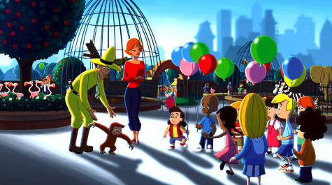 Il canale per bambini in età prescolare, porta quindi sullo schermo la simpatica scimmietta mixando lì animazione tradizionale alla tecnologia digitale. La serie televisiva, nata per insegnare ai bambini la scienza e la matematica, torna in versione lungometraggio con le nuove avventure di George maldestra e avventurosa e Ted, l’uomo dal cappello giallo.