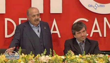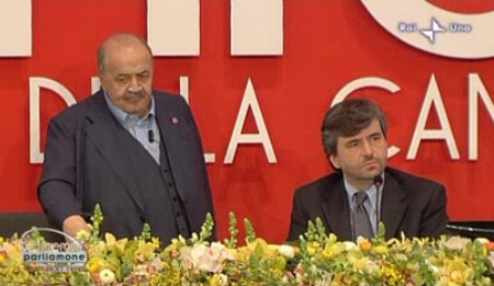 12.56 Maurizio Costanzo saluta gli ospiti e i telespettatori. Presente anche il presidente della SIAE Antonio Assumma.
