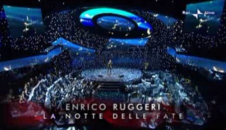 21.31 – Ecco Enrico Ruggeri. Ieri sera non mi ero accorto che a dirigere l’orchestra è la moglie di Enrico, Andrea Mirò. Anche la sua La notte della fate mi sembra già molto migliore rispetto a ieri sera. E’ un brano che, comunque, non mi convince più di tanto come mi aspettavo. VOTO: 6+.