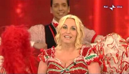 23.28 – Torna sul palco il corpo di ballo del Moulin Rouge. A ballare con loro questa volta anche la Clerici che si esibisc in una divertente tarantella.