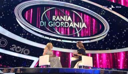 22.10 – E’ arrivato il momento tanto atteso (ma anche no): ecco la regina Rania di Giordania. Parte l’intervista e partono i problemi: la voce della regina e quella dell’interpetre sono sovrapposte tanto che non si capisce nulla. Da lodare Rania: invece di chiedere un compenso, ha invitato la Rai a devolvere soldi alla sua associazione benefica. Brava regina.