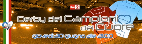 Questa sera alle 21.00 su Raidue va in onda Il Derby dei Campioni del Cuore, che come ogni anno va in onda in diretta dallo Stadio Olimpico di Roma per raccogliere fondi destinati alla ricerca.