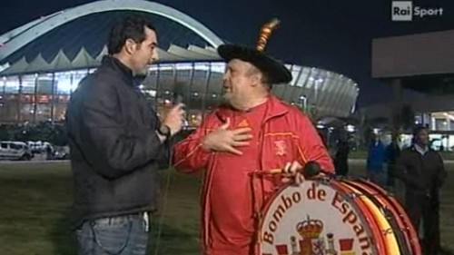 Al momento di terminare il collegamento, un masochista Marco Mazzocchi rimprovera i due inviati rei di aver intervistato un tifoso tedesco e costringe Antinelli e Bizzotto a stanare un tifoso spagnolo per la dovuta par condicio. Quando a presentarsi dinanzi alla telecamera è nientemeno che Manolo, conosciuto come El Bombo de Espana con tanto di tamburo a tracolla, il buon Bizzotto si dissocia, scomparendo letteralmente nel nulla.