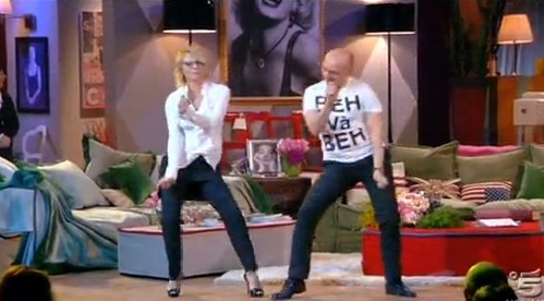 Maria De Filippi per la scorsa puntata di Kalispera ha optato per un look … beh meglio non continuare. Camicia con rouches bianca, gonna corta e sotto un pantalone aderente e scarpa aperta sulle punte. Un orripilante look da detenzione.