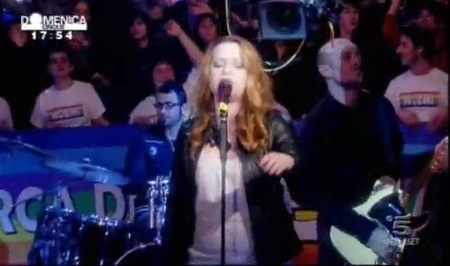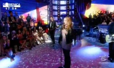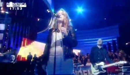 Noemi ospite a Domenica Cinque indossava un maxi maglione bianco di lana, una giacchino di pelle e dei jeans. Come fa a vestirsi così male? Io non ho parole, l’abbinamento maglione lungo e jeans è osceno!