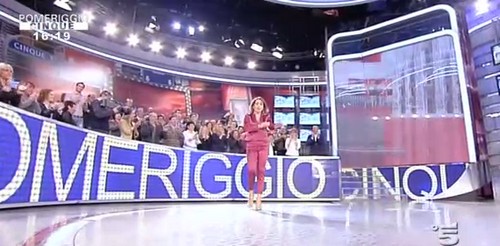 Barbara D’Urso, a Pomeriggio Cinque la scorsa puntata ha indossato un completo magenta in raso composto da top , giacca e pantalone a sigaretta sopra le caviglie dello stesso colore. Cara Barbara, dacci un taglio! Cambia stile!