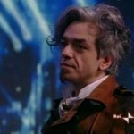 Enrico Nordio il concorrente eliminato di X Factor 2 nella precedente puntata del programma indossava una giacca scura, una maglia nera con stampa bianca ed un paio di jeans chiari … semplice, ma nello stesso tempo simpatico.