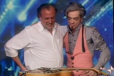 Morgan, il mago dandy (non mi stancherò mai di dirlo): che look, che stile, ha sempre qualche cosa che sottolinea la sua personalità retrò, con quell’accento estetico molto inglese, messo in risalto dal papillon bianco e il taglio di capelli molto filosofico. Morgan hai pensato di mettere su una casa di moda?