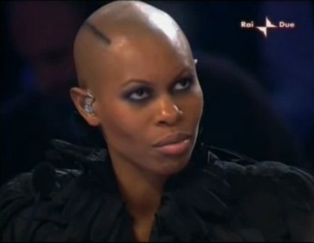 Skin, ospite lo scorso mercoledì ad X Factor 3, indossava un completo nero, maglia con ruches e pantaloni semi aderenti. La bravissima cantante dei Skunk Anansie sa sempre come farsi notare, e lo fa sempre regalandoci chicche di stile.