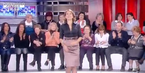 Barbara D’Urso, a Pomeriggio Cinque oramai si presenta sempre con la stessa tipologia di abiti. Stavolta è toccato al completo camicia scollata e gonna. Barbara, il nero, così come il color cipria ti stanno molto male … cambia almeno colori!