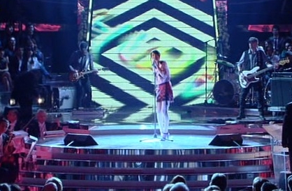 Iskra! Provare a definire l’abbigliamento della cantante è pressoché impossibile: capelli lunghi sino al fondoschiena con treccine, cappello grigio chiaro e una casacca nera larga sopra un vestito da arlecchino. Il trucco? Meglio non continuare! Sinceramente non riuscivo a capire se la donzella fosse frutto della mia immaginazione, fosse una specie di Benjamin Button al femminile, o semplicemente è una donna a cui piace vestirsi da circo. Pollice giù!