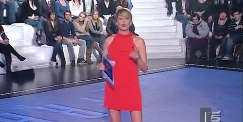 Alessia Marcuzzi, conduttrice del Grande Fratello 11, per la puntata scorsa ha indossato un dress rosso che lasciava intravedere la pancetta e che le stava molto bene. Si merita un bel 7!