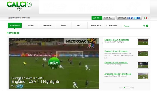 Calciotv è la web tv dove i tifosi possono vedere e rivedere i minuti più avvincenti delle partite dei Mondiali di calcio 2010 che si svolgono in Sud Africa. Dopo la cerimonia di apertura e il primo calcio di inizio, per capire cosa succede non poco lontano da noi, ecco nascere Calcio tv la web tv che permette di vivere i Mondiali minuto per minuto. In attesa della prima partita dei nostri azzurri che sarà trasmessa lunedì 14 alle 20.30, potrete godervi alcuni dei momenti più emozionanti dei primi giorni dei campionati.