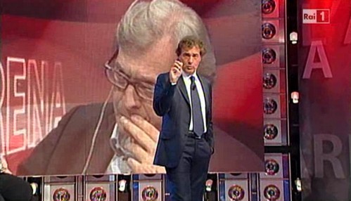 In attesa del momento clou di Domenica Cinque ossia le rivelazioni di Lele Mora, appaiono inspiegabilmente in sovraimpressione, due numeri: 7 e 16. Giocateli al Lotto, è un segno del destino.