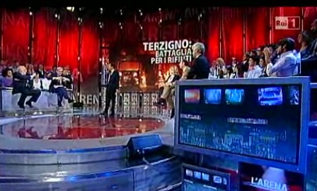 Il secondo caso di cronaca affrontato da Giletti nella sua Arena, riguarda gli incidenti di Terzigno sull’emergenza rifiuti. Con un monologo, faccia a faccia con la telecamera, frutto di impegnative lezioni di Giletti, che ha ormai assimilato alla perfezione il metodo Strasberg, il conduttore si scaglia senza mezzi termini contro gli incidenti di Terzigno.