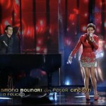 Simona Molinari canta con Peter Cincotti. La canzone che passa è Felicità. No, non è un omaggio ad Al Bano e Romina. È una canzone stile anni 30, ritmo coinvolgente. O la ami o la odi. In ogni caso a guardare il vestito di Simona Molinari, sembra più che altro un omaggio a Carolina Kostner…