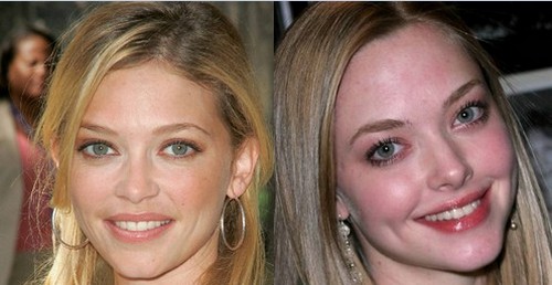 Amanda Seufried sembra la sorella gemella di Amanda Detmer, la forma del viso scarno è identica, il colorito è chiaro e gli occhi sono entrambi grandi e chiari, il naso è piccolo, mentre le labbra sono bel delineate, infine la chioma è bionda e fluente per tutte e due. Ditemi voi se non sembrano gemelle!